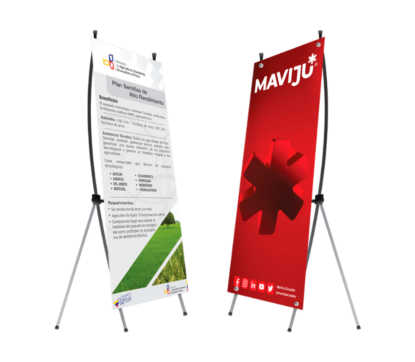 Soluciones portátiles y efectivas para exhibir tu marca en ferias, eventos o puntos de venta con fácil montaje.